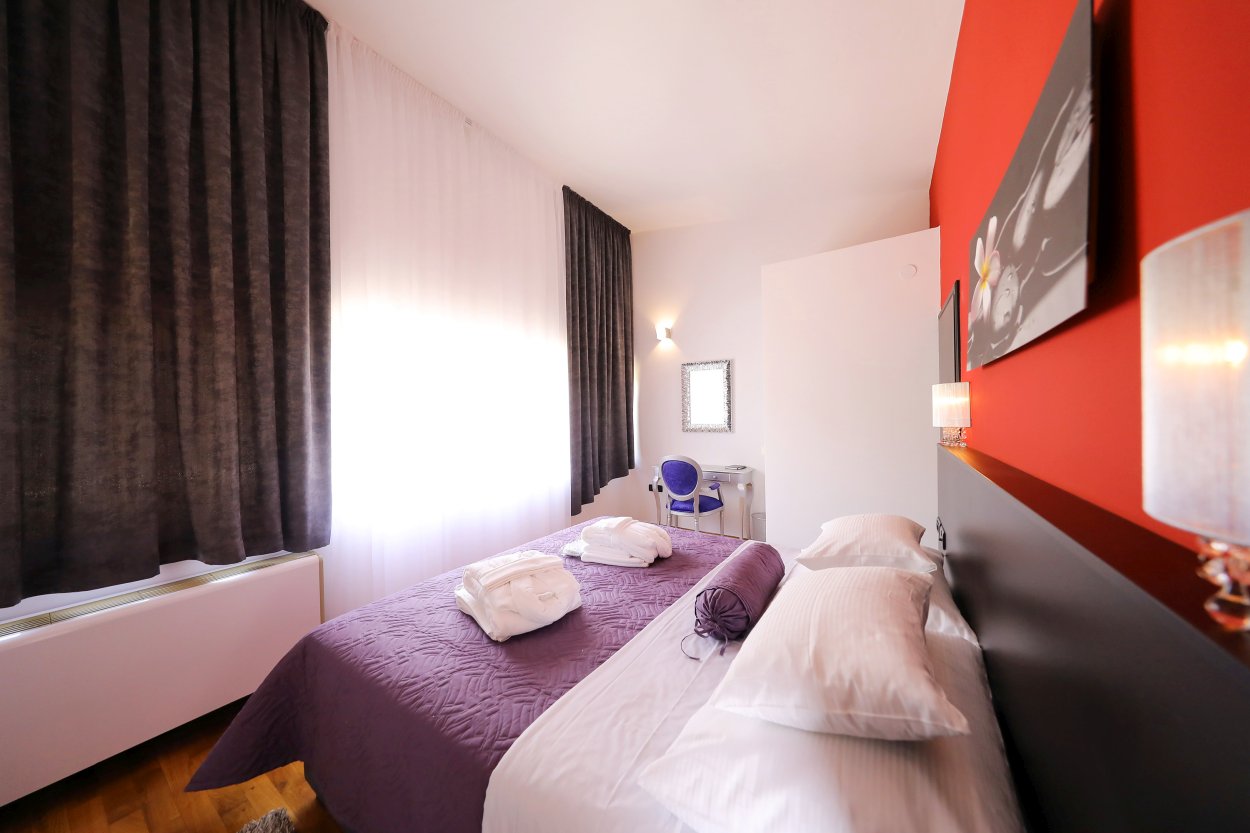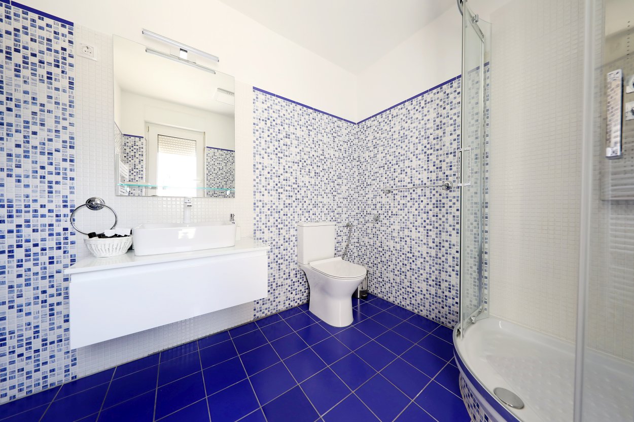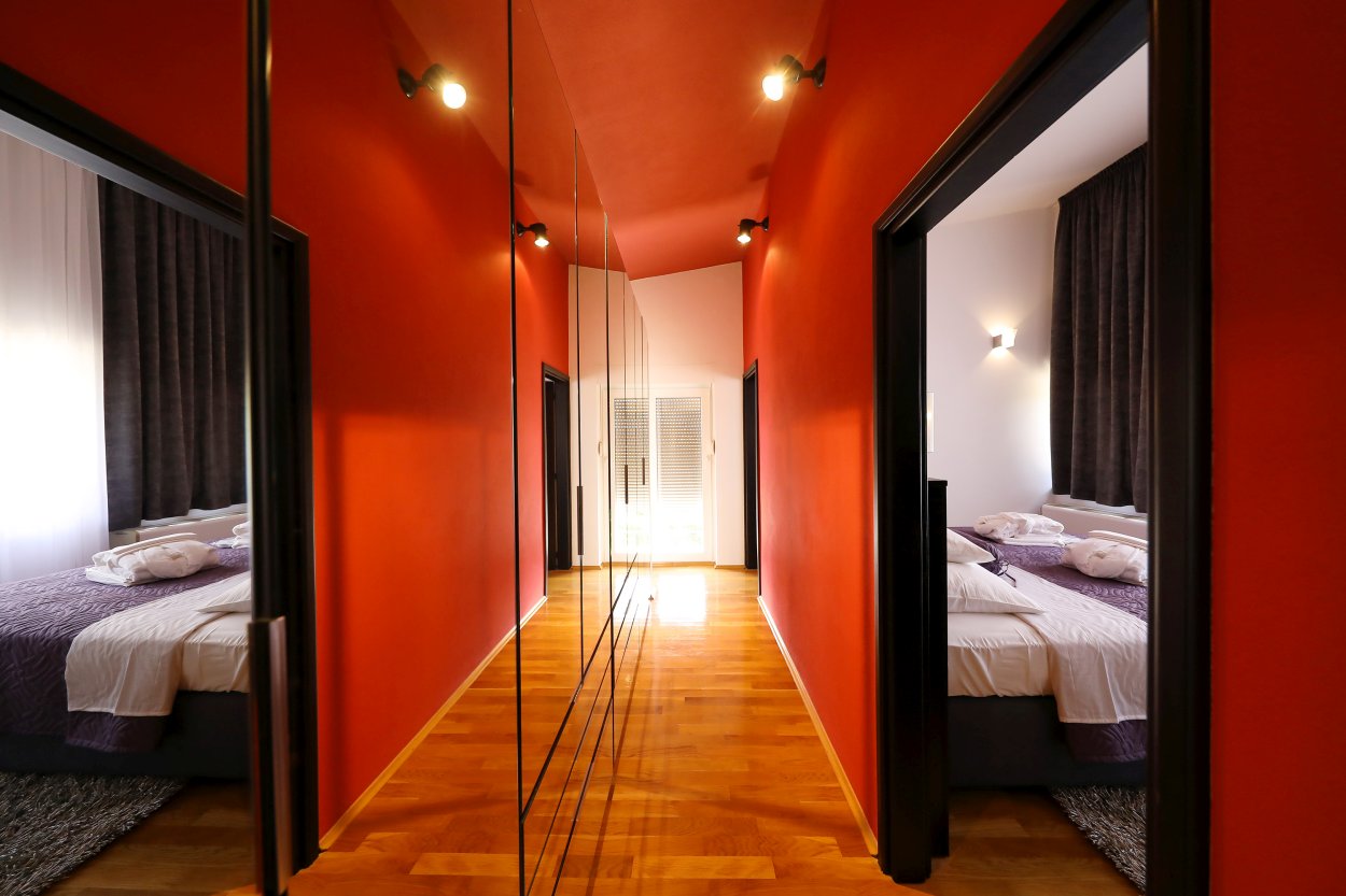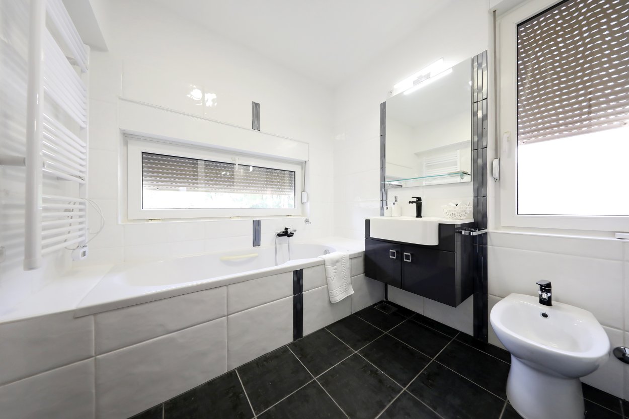 The fully air-conditioned villa has 3 bedrooms. Two of which are equipped with a double bed whereas one has a double bed with the possibility of separation into two single beds. Although it has 3 bedrooms, the house can comfortably accommodate up to 8 people because there is a sofa bed for two people at your disposal as well.